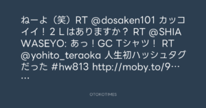 ねーよ(笑)RT @dosaken101 カッコイイ!2Lはありますか? RT @SHIAWASEYO: あっ!GC Tシャツ! RT @yohito_teraoka 人生初ハッシュタグだった #hw813 http://moby.to/99eh3w