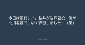 今日は最終リハ。桜井が岩沢君役、僕が北川君役で、ゆず練習しましたー(笑)