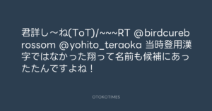 寺岡呼人 @yohito_teraoka – 11:17・2010年10月26日 2010 10/26 寺岡呼人 2010-10-26 君詳し〜ね(ToT)/~~~RT @birdcurebrossom @yohito_teraoka 当時登用漢字ではなかった翔って名前も候補にあったたんですよね! Source:https://x.com/yohito_teraoka/status/28750083886 text X Post 寺岡呼人 寺岡呼人 この記事が気に入ったら フォローしてね! Follow @OtokoTimes1988 よかったらシェアしてね! URLをコピーしました! 寺岡呼人 @yohito_teraoka - 10:33・2010年10月26日 寺岡呼人 @yohito_teraoka - 11:30・2010年10月26日 関連記事 Artist 寺岡呼人 1968.02.07