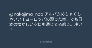 @nakajima_nob アルバムめちゃくちゃいい!ヨーロッパの湿った空、でも日本の懐かしい空にも通じてる感じ。凄い!