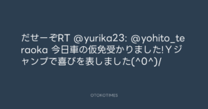 だせーぞRT @yurika23: @yohito_teraoka 今日車の仮免受かりました!Yジャンプで喜びを表しました(^0^)/