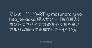寺岡呼人 @yohito_teraoka – 16:48・2010年10月29日 2010 10/29 寺岡呼人 2010-10-29 でしょー(^_^)vRT @masunon: @yohito_teraoka 呼人サン…『独立猿人』ホントにヤバイです☆めちゃくちゃ良いアルバム♪買って正解でした〜(^0^)/ Source:https://x.com/yohito_teraoka/status/29066488347 text X Post 寺岡呼人 寺岡呼人 この記事が気に入ったら フォローしてね! Follow @OtokoTimes1988 よかったらシェアしてね! URLをコピーしました! 寺岡呼人 @yohito_teraoka - 16:47・2010年10月29日 寺岡呼人 @yohito_teraoka - 0:45・2010年10月30日 関連記事 Artist 寺岡呼人 1968.02.07