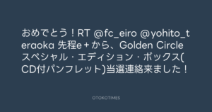 寺岡呼人 @yohito_teraoka – 17:44・2010年11月2日 2010 11/02 寺岡呼人 2010-11-02 おめでとう!RT @fc_eiro @yohito_teraoka 先程e+から、Golden Circleスペシャル・エディション・ボックス(CD付パンフレット)当選連絡来ました! Source:https://x.com/yohito_teraoka/status/29452334090 text X Post 寺岡呼人 寺岡呼人 この記事が気に入ったら フォローしてね! Follow @OtokoTimes1988 よかったらシェアしてね! URLをコピーしました! 寺岡呼人 @yohito_teraoka - 17:27・2010年11月2日 寺岡呼人 @yohito_teraoka - 17:45・2010年11月2日 関連記事 Artist 寺岡呼人 1968.02.07