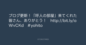 寺岡呼人 @yohito_teraoka – 23:03・2010年11月3日 2010 11/03 寺岡呼人 2010-11-03 ブログ更新!「呼人の部屋」来てくれた皆さん、ありがとう! http://bit.ly/aWvCKd #yohito Source:https://x.com/yohito_teraoka/status/29573991500 text X Post 寺岡呼人 寺岡呼人 この記事が気に入ったら フォローしてね! Follow @OtokoTimes1988 よかったらシェアしてね! URLをコピーしました! 寺岡呼人 @yohito_teraoka - 21:28・2010年11月3日 寺岡呼人 @yohito_teraoka - 22:54・2010年11月4日 関連記事 Artist 寺岡呼人 1968.02.07