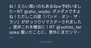ね!えらい高いのもあるねw予約いましたーRT @sho_wada: ダメダメですよね!ただしこの度「バンド・オン・ザ・ラン」ががっつりリマスターされました。是非これを機会に!RT @yohito_teraoka 驚いたことに、意外にまだリマスターって出てないんだねー