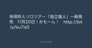 寺岡呼人 @yohito_teraoka – 18:06・2010年11月12日 2010 11/12 寺岡呼人 2010-11-12 寺岡呼人ソロツアー「独立猿人」一般発売 11月20日!かもーん! http://bit.ly/bu7is0 Source:https://x.com/yohito_teraoka/status/30107767847... text X Post 寺岡呼人 寺岡呼人 この記事が気に入ったら フォローしてね! Follow @OtokoTimes1988 よかったらシェアしてね! URLをコピーしました! 寺岡呼人 @yohito_teraoka - 16:36・2010年11月12日 寺岡呼人 @yohito_teraoka - 1:50・2010年11月13日 関連記事 Artist 寺岡呼人 1968.02.07