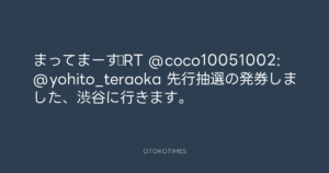 まってまーす♪RT @coco10051002: @yohito_teraoka 先行抽選の発券しました、渋谷に行きます。