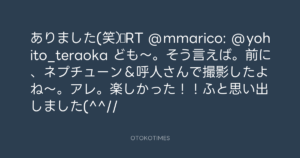ありました(笑)♪RT @mmarico: @yohito_teraoka ども〜。そう言えば。前に、ネプチューン&呼人さんで撮影したよね〜。アレ。楽しかった!!ふと思い出しました(^^//