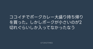 寺岡呼人 @yohito_teraoka – 18:08・2010年11月22日 2010 11/22 寺岡呼人 2010-11-22 ココイチでポークカレー大盛り持ち帰りを買った。しかしポークが小さいのが2切れぐらいしか入ってなかったなう Source:https://x.com/yohito_teraoka/status/66351109463... text X Post 寺岡呼人 寺岡呼人 この記事が気に入ったら フォローしてね! Follow @OtokoTimes1988 よかったらシェアしてね! URLをコピーしました! 寺岡呼人 @yohito_teraoka - 14:51・2010年11月22日 寺岡呼人 @yohito_teraoka - 18:20・2010年11月22日 関連記事 Artist 寺岡呼人 1968.02.07