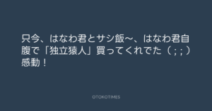 只今、はなわ君とサシ飯〜、はなわ君自腹で「独立猿人」買ってくれでた( ; ; )感動!