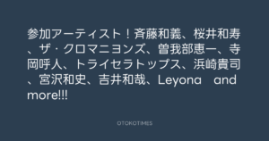 参加アーティスト!斉藤和義、桜井和寿、ザ・クロマニヨンズ、曽我部恵一、寺岡呼人、トライセラトップス、浜崎貴司、宮沢和史、吉井和哉、Leyona and more!!!