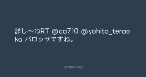 寺岡呼人 @yohito_teraoka – 1:50・2010年12月13日 2010 12/13 寺岡呼人 2010-12-13 詳し〜ねRT @ca710 @yohito_teraoka バロッサですね。 Source:https://x.com/yohito_teraoka/status/13999181349... text X Post 寺岡呼人 寺岡呼人 この記事が気に入ったら フォローしてね! Follow @OtokoTimes1988 よかったらシェアしてね! URLをコピーしました! 寺岡呼人 @yohito_teraoka - 0:32・2010年12月13日 寺岡呼人 @yohito_teraoka - 1:50・2010年12月13日 関連記事 Artist 寺岡呼人 1968.02.07