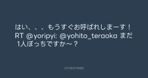 寺岡呼人 @yohito_teraoka – 19:32・2010年12月16日 2010 12/16 寺岡呼人 2010-12-16 はい、、、もうすぐお呼ばれしまーす!RT @yoripyi: @yohito_teraoka まだ 1人ぼっちですか〜? Source:https://x.com/yohito_teraoka/status/15353492663... text X Post 寺岡呼人 寺岡呼人 この記事が気に入ったら フォローしてね! Follow @OtokoTimes1988 よかったらシェアしてね! URLをコピーしました! 寺岡呼人 @yohito_teraoka - 19:12・2010年12月16日 寺岡呼人 @yohito_teraoka - 19:32・2010年12月16日 関連記事 Artist 寺岡呼人 1968.02.07