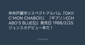寺岡呼人 @yohito_teraoka – 19:24・2010年12月20日 2010 12/20 寺岡呼人 2010-12-20 仲井戸麗市リスペクトアルバム『OK!!!C’MON CHABO!!!』 『ギブソン(CHABO’S BLUES)』発売日 1988/2/25 ジュンスカデビュー年だ! Source:https://x.com/yohito_teraoka/status/16801114036... text X Post 寺岡呼人 寺岡呼人 この記事が気に入ったら フォローしてね! Follow @OtokoTimes1988 よかったらシェアしてね! URLをコピーしました! 寺岡呼人 @yohito_teraoka - 19:20・2010年12月20日 寺岡呼人 @yohito_teraoka - 19:25・2010年12月20日 関連記事 Artist 寺岡呼人 1968.02.07