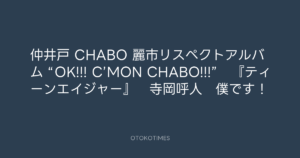寺岡呼人 @yohito_teraoka – 23:35・2010年12月20日 2010 12/20 寺岡呼人 2010-12-20 仲井戸 CHABO 麗市リスペクトアルバム “OK!!! C’MON CHABO!!!” 『ティーンエイジャー』 寺岡呼人 僕です! Source:https://x.com/yohito_teraoka/status/16864392758... text X Post 寺岡呼人 寺岡呼人 この記事が気に入ったら フォローしてね! Follow @OtokoTimes1988 よかったらシェアしてね! URLをコピーしました! 寺岡呼人 @yohito_teraoka - 23:35・2010年12月20日 寺岡呼人 @yohito_teraoka - 23:36・2010年12月20日 関連記事 Artist 寺岡呼人 1968.02.07