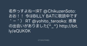 名作っすよねー♪RT @ChikuzenSato: おお!! 今はBILLY BATに耽読中です^−^) RT @yohito_teraoka: 感激の出会いがありました(^_^) http://bit.ly/eQUK0K