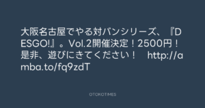寺岡呼人 @yohito_teraoka – 11:25・2011年2月1日 2011 2/01 寺岡呼人 2011-02-01 大阪名古屋でやる対バンシリーズ、『DESGO!』。Vol.2開催決定!2500円! 是非、遊びにきてください! http://amba.to/fq9zdT Source:https://x.com/yohito_teraoka/status/32263164234... text X Post 寺岡呼人 寺岡呼人 この記事が気に入ったら フォローしてね! Follow @OtokoTimes1988 よかったらシェアしてね! URLをコピーしました! 寺岡呼人 @yohito_teraoka - 11:19・2011年2月1日 寺岡呼人 @yohito_teraoka - 11:26・2011年2月1日 関連記事 Artist 寺岡呼人 1968.02.07