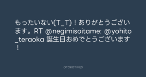 寺岡呼人 @yohito_teraoka – 15:11・2011年2月7日 2011 2/07 寺岡呼人 2011-02-07 もったいない(T_T)!ありがとうございます。RT @negimisoitame: @yohito_teraoka 誕生日おめでとうございます! Source:https://x.com/yohito_teraoka/status/34494385248... text X Post 寺岡呼人 寺岡呼人 この記事が気に入ったら フォローしてね! Follow @OtokoTimes1988 よかったらシェアしてね! URLをコピーしました! 寺岡呼人 @yohito_teraoka - 14:46・2011年2月7日 寺岡呼人 @yohito_teraoka - 15:11・2011年2月7日 関連記事 Artist 寺岡呼人 1968.02.07