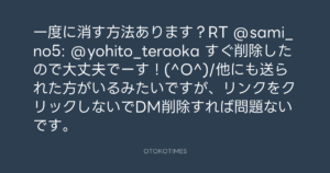 寺岡呼人 @yohito_teraoka – 15:23・2011年2月7日 2011 2/07 寺岡呼人 2011-02-07 一度に消す方法あります?RT @sami_no5: @yohito_teraoka すぐ削除したので大丈夫でーす!(^O^)/他にも送られた方がいるみたいですが、リンクをクリックしないでDM削除すれば問題ないです。 Source:https://x.com/yohito_teraoka/status/34497516359... text X Post 寺岡呼人 寺岡呼人 この記事が気に入ったら フォローしてね! Follow @OtokoTimes1988 よかったらシェアしてね! URLをコピーしました! 寺岡呼人 @yohito_teraoka - 15:23・2011年2月7日 寺岡呼人 @yohito_teraoka - 15:24・2011年2月7日 関連記事 Artist 寺岡呼人 1968.02.07