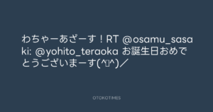 寺岡呼人 @yohito_teraoka – 17:21・2011年2月7日 2011 2/07 寺岡呼人 2011-02-07 わちゃーあざーす!RT @osamu_sasaki: @yohito_teraoka お誕生日おめでとうございまーす(^▽^)/ Source:https://x.com/yohito_teraoka/status/34527264733... text X Post 寺岡呼人 寺岡呼人 この記事が気に入ったら フォローしてね! Follow @OtokoTimes1988 よかったらシェアしてね! URLをコピーしました! 青山英樹 @aoyama_hideki - 16:15・2011年2月7日 寺岡呼人 @yohito_teraoka - 17:22・2011年2月7日 関連記事 Artist 寺岡呼人 1968.02.07