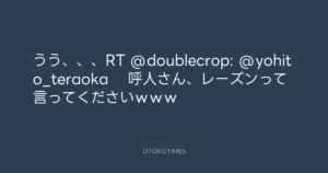 寺岡呼人 @yohito_teraoka – 22:48・2011年2月16日 2011 2/16 寺岡呼人 2011-02-16 うう、、、RT @doublecrop: @yohito_teraoka 呼人さん、レーズンって言ってくださいwww Source:https://x.com/yohito_teraoka/status/37870922862... text X Post 寺岡呼人 寺岡呼人 この記事が気に入ったら フォローしてね! Follow @OtokoTimes1988 よかったらシェアしてね! URLをコピーしました! 寺岡呼人 @yohito_teraoka - 22:29・2011年2月16日 寺岡呼人 @yohito_teraoka - 22:49・2011年2月16日 関連記事 Artist 寺岡呼人 1968.02.07