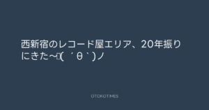 寺岡呼人 @yohito_teraoka – 16:08・2011年2月18日 2011 2/18 寺岡呼人 2011-02-18 西新宿のレコード屋エリア、20年振りにきた〜♪( ´θ`)ノ Source:https://x.com/yohito_teraoka/status/38495023829... text X Post 寺岡呼人 寺岡呼人 この記事が気に入ったら フォローしてね! Follow @OtokoTimes1988 よかったらシェアしてね! URLをコピーしました! 青山英樹 @aoyama_hideki - 15:29・2011年2月18日 寺岡呼人 @yohito_teraoka - 16:40・2011年2月18日 関連記事 Artist 寺岡呼人 1968.02.07