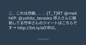 こ、これは恐縮、、、(T_T)RT @meith69: @yohito_teraoka 呼人さんに嫉妬してる竹中さんのツイートはこちらです→ http://bit.ly/e01RVL