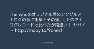 寺岡呼人 @yohito_teraoka – 0:35・2011年2月26日 2011 2/26 寺岡呼人 2011-02-26 The whoのオリジナル盤のシングルアナログの音に衝撃!その後、LPのアナログレコードと比べたが段違い! ヤバイ〜 http://moby.to/9onezf Source:https://x.com/yohito_teraoka/status/41159400085... text X Post 寺岡呼人 寺岡呼人 この記事が気に入ったら フォローしてね! Follow @OtokoTimes1988 よかったらシェアしてね! URLをコピーしました! 青山英樹 @aoyama_hideki - 0:22・2011年2月26日 寺岡呼人 @yohito_teraoka - 0:37・2011年2月26日 関連記事 Artist 寺岡呼人 1968.02.07