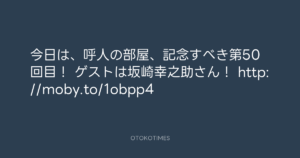 寺岡呼人 @yohito_teraoka – 19:10・2011年3月1日 2011 3/01 寺岡呼人 2011-03-01 今日は、呼人の部屋、記念すべき第50回目! ゲストは坂崎幸之助さん! http://moby.to/1obpp4 Source:https://x.com/yohito_teraoka/status/42527159914... text X Post 寺岡呼人 寺岡呼人 この記事が気に入ったら フォローしてね! Follow @OtokoTimes1988 よかったらシェアしてね! URLをコピーしました! 寺岡呼人 @yohito_teraoka - 19:07・2011年3月1日 寺岡呼人 @yohito_teraoka - 3:23・2011年3月2日 関連記事 Artist 寺岡呼人 1968.02.07