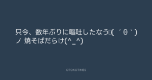 只今、数年ぶりに嘔吐したなう♪( ´θ`)ノ 焼そばだらけ(^_^)