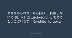 寺岡呼人 @yohito_teraoka – 21:25・2011年3月7日 2011 3/07 寺岡呼人 2011-03-07 ガセかもしれないから(笑)、拡散しないで(笑)RT @tatchytatchy: おめでとうございます!@yohito_teraoka Source:https://x.com/yohito_teraoka/status/44735315591... text X Post 寺岡呼人 寺岡呼人 この記事が気に入ったら フォローしてね! Follow @OtokoTimes1988 よかったらシェアしてね! URLをコピーしました! 寺岡呼人 @yohito_teraoka - 21:17・2011年3月7日 寺岡呼人 @yohito_teraoka - 23:05・2011年3月7日 関連記事 Artist 寺岡呼人 1968.02.07