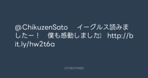 @ChikuzenSato  イーグルス読みましたー! 僕も感動しました♪ http://bit.ly/hw2t6a