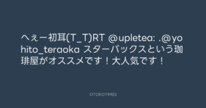 へぇー初耳(T_T)RT @upletea: .@yohito_teraoka スターバックスという珈琲屋がオススメです!大人気です!