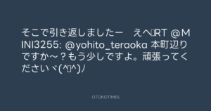 寺岡呼人 @yohito_teraoka – 14:18・2011年4月1日 2011 4/01 寺岡呼人 2011-04-01 そこで引き返しましたー えへ♪RT @MINI3255: @yohito_teraoka 本町辺りですか~?もう少しですよ。頑張ってくださいヾ(^▽^)ノ Source:https://x.com/yohito_teraoka/status/53687708106... text X Post 寺岡呼人 寺岡呼人 この記事が気に入ったら フォローしてね! Follow @OtokoTimes1988 よかったらシェアしてね! URLをコピーしました! Koyo Maeda @koyomaeda - 13:56・2011年4月1日 寺岡呼人 @yohito_teraoka - 15:09・2011年4月1日 関連記事 Artist 寺岡呼人 1968.02.07