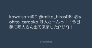 kawaiso-niRT @mika_hiros08: @yohito_teraoka 呼人さーんっ!!今日夢に呼人さん出て来ました(*’▽’*)!