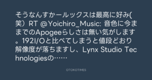 そうなんすかールックスは最高に好み(笑)RT @Yoichiro_Music: 音色に今ままでのApogeeらしさは無い気がします。192I/Oと比べてしまうと値段どおり解像度が落ちますし、Lynx Studio Technologiesのが拡張性高いかも。@daichi307