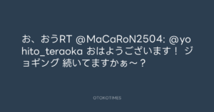 お、おうRT @MaCaRoN2504: @yohito_teraoka おはようございます! ジョギング 続いてますかぁ〜?