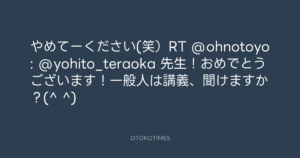 寺岡呼人 @yohito_teraoka – 22:16・2011年4月23日 2011 4/23 寺岡呼人 2011-04-23 やめてーください(笑)RT @ohnotoyo: @yohito_teraoka 先生!おめでとうございます!一般人は講義、聞けますか?(^ ^) Source:https://x.com/yohito_teraoka/status/61780472463... text X Post 寺岡呼人 寺岡呼人 この記事が気に入ったら フォローしてね! Follow @OtokoTimes1988 よかったらシェアしてね! URLをコピーしました! 寺岡呼人 @yohito_teraoka - 21:36・2011年4月23日 寺岡呼人 @yohito_teraoka - 22:17・2011年4月23日 関連記事 Artist 寺岡呼人 1968.02.07