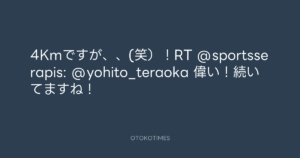寺岡呼人 @yohito_teraoka – 11:52・2011年4月25日 2011 4/25 寺岡呼人 2011-04-25 4Kmですが、、(笑)!RT @sportsserapis: @yohito_teraoka 偉い!続いてますね! Source:https://x.com/yohito_teraoka/status/62348281262... text X Post 寺岡呼人 寺岡呼人 この記事が気に入ったら フォローしてね! Follow @OtokoTimes1988 よかったらシェアしてね! URLをコピーしました! 寺岡呼人 @yohito_teraoka - 10:08・2011年4月25日 寺岡呼人 @yohito_teraoka - 12:54・2011年4月25日 関連記事 Artist 寺岡呼人 1968.02.07