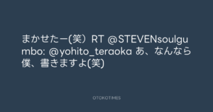 まかせたー(笑)RT @STEVENsoulgumbo: @yohito_teraoka あ、なんなら僕、書きますよ(笑)