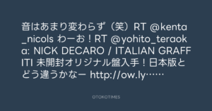 音はあまり変わらず(笑)RT @kenta_nicols わーお!RT @yohito_teraoka: NICK DECARO / ITALIAN GRAFFITI 未開封オリジナル盤入手!日本版とどう違うかなー http://ow.ly/i/b3YM