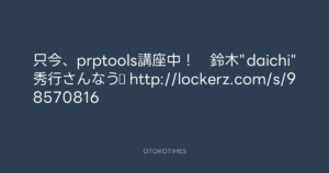寺岡呼人 @yohito_teraoka – 16:01・2011年5月4日 2011 5/04 寺岡呼人 2011-05-04 只今、prptools講座中! 鈴木”daichi”秀行さんなう♪ http://lockerz.com/s/98570816 Source:https://x.com/yohito_teraoka/status/65672439614... text X Post 寺岡呼人 寺岡呼人 この記事が気に入ったら フォローしてね! Follow @OtokoTimes1988 よかったらシェアしてね! URLをコピーしました! Koyo Maeda @koyomaeda - 11:12・2011年5月4日 Koyo Maeda @koyomaeda - 18:10・2011年5月4日 関連記事 Artist 寺岡呼人 1968.02.07