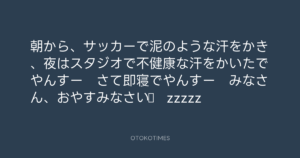 朝から、サッカーで泥のような汗をかき、夜はスタジオで不健康な汗をかいたでやんすー さて即寝でやんすー みなさん、おやすみなさい♪ zzzzz