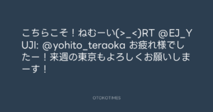 こちらこそ!ねむーい(>_<)RT @EJ_YUJI: @yohito_teraoka お疲れ様でしたー!来週の東京もよろしくお願いしまーす!