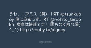 うわ、ニアミス(笑)!RT @tsunkuboy 俺に麻布っす。RT @yohito_teraoka: 東京は快晴です!