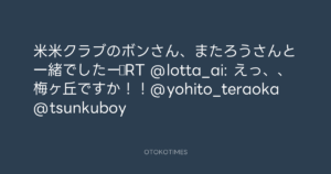 米米クラブのボンさん、またろうさんと一緒でしたー☆RT @lotta_ai: えっ、、梅ヶ丘ですか!!@yohito_teraoka @tsunkuboy