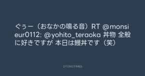 寺岡呼人 @yohito_teraoka – 14:13・2011年6月14日 2011 6/14 寺岡呼人 2011-06-14 ぐぅー(おなかの鳴る音)RT @monsieur0112: @yohito_teraoka 丼物 全般に好きですが 本日は鰻丼です(笑) Source:https://x.com/yohito_teraoka/status/80503188469... text X Post 寺岡呼人 寺岡呼人 この記事が気に入ったら フォローしてね! Follow @OtokoTimes1988 よかったらシェアしてね! URLをコピーしました! 寺岡呼人 @yohito_teraoka - 13:32・2011年6月14日 寺岡呼人 @yohito_teraoka - 18:48・2011年6月14日 関連記事 Artist 寺岡呼人 1968.02.07