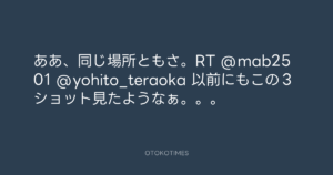 寺岡呼人 @yohito_teraoka – 2:02・2011年7月14日 2011 7/14 寺岡呼人 2011-07-14 ああ、同じ場所ともさ。RT @mab2501 @yohito_teraoka 以前にもこの3ショット見たようなぁ。。。 Source:https://x.com/yohito_teraoka/status/91190769863... text X Post 寺岡呼人 寺岡呼人 この記事が気に入ったら フォローしてね! Follow @OtokoTimes1988 よかったらシェアしてね! URLをコピーしました! 寺岡呼人 @yohito_teraoka - 1:53・2011年7月14日 Koyo Maeda @koyomaeda - 3:27・2011年7月14日 関連記事 Artist 寺岡呼人 1968.02.07
