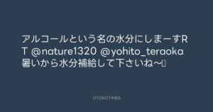 寺岡呼人 @yohito_teraoka – 11:46・2011年8月13日 2011 8/13 寺岡呼人 2011-08-13 アルコールという名の水分にしまーすRT @nature1320 @yohito_teraoka 暑いから水分補給して下さいね~☆ Source:https://x.com/yohito_teraoka/status/10220927901... text X Post 寺岡呼人 寺岡呼人 この記事が気に入ったら フォローしてね! Follow @OtokoTimes1988 よかったらシェアしてね! URLをコピーしました! 寺岡呼人 @yohito_teraoka - 11:44・2011年8月13日 寺岡呼人 @yohito_teraoka - 11:48・2011年8月13日 関連記事 Artist 寺岡呼人 1968.02.07