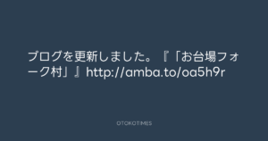 寺岡呼人 @yohito_teraoka – 0:06・2011年8月19日 2011 8/19 寺岡呼人 2011-08-19 ブログを更新しました。『「お台場フォーク村」』http://amba.to/oa5h9r Source:https://x.com/yohito_teraoka/status/10420761415... text X Post 寺岡呼人 寺岡呼人 この記事が気に入ったら フォローしてね! Follow @OtokoTimes1988 よかったらシェアしてね! URLをコピーしました! 青山英樹 @aoyama_hideki - 18:39・2011年8月18日 青山英樹 @aoyama_hideki - 10:43・2011年8月19日 関連記事 Artist 寺岡呼人 1968.02.07
